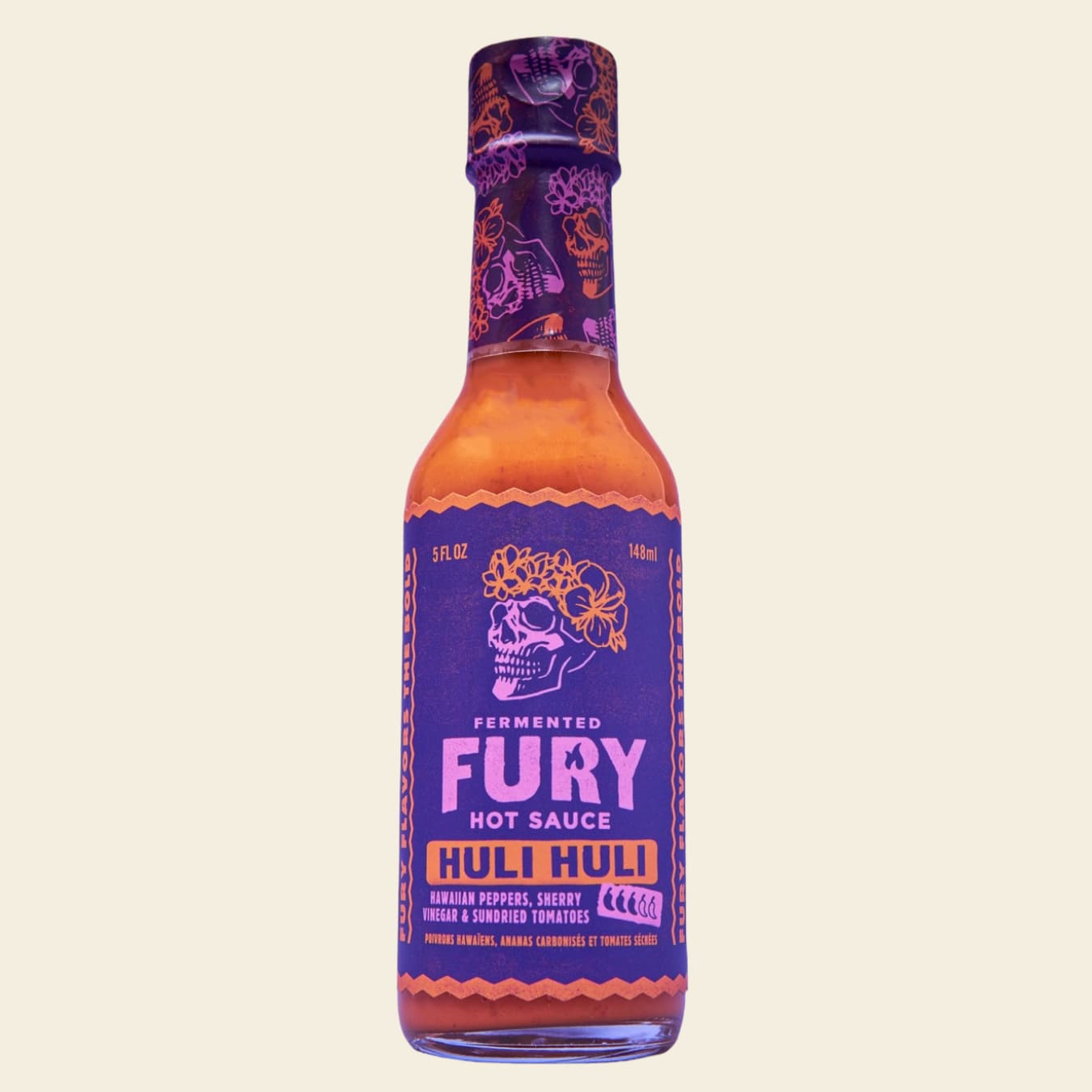Fermented Hawaiian peppers (180+ days) with pineapple, ginger, soy, smoked habanero. Sweet and savory in equal measure. The pineapple caramelizes on the grill. The habanero reminds you this is hot sauce, not marinade. The kind of sauce that makes you forget everything else on the table.